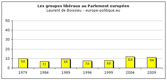 Évolution de la composition des groupes libéraux au Parlement européen
